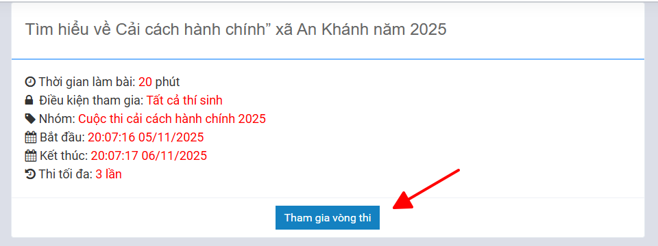 Truy cập trang chủ, lựa chọn cuộc thi để tham gia.